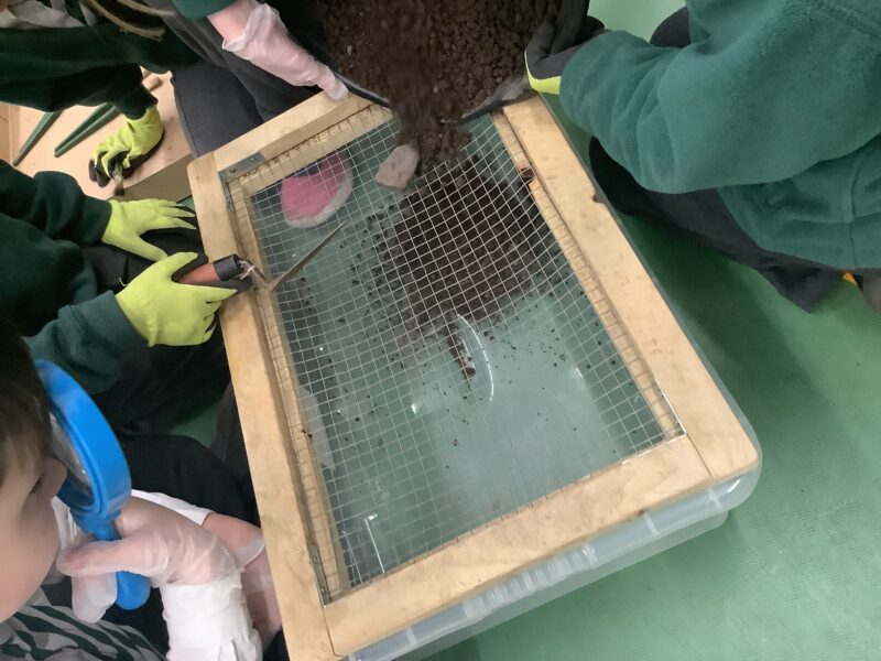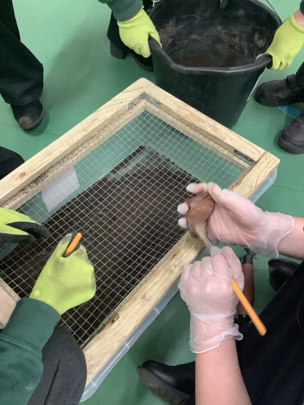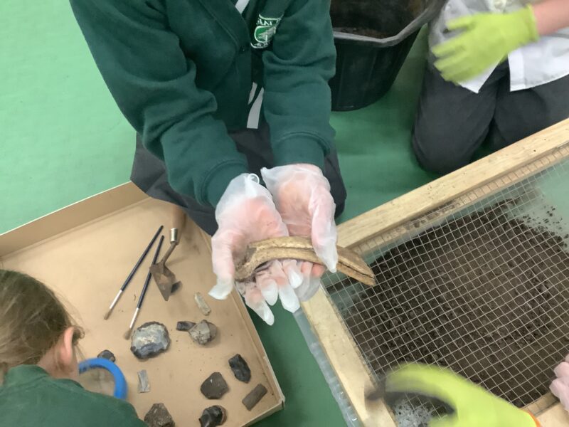 They then learnt how archaeologists discover artefacts, and had a go at discovering their own, using sieves, trowels and brushes.